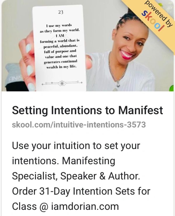 Manifesting Specialist. Use your intuition to set your intentions. Order 31-Day Intention Sets @ iamdorian.com